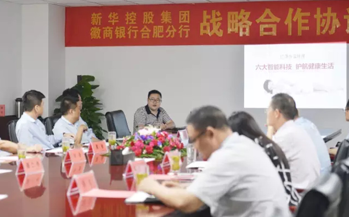 在全體與會嘉賓見證下,新華控股集團董事長吳成柱與徽商銀行合肥分行行長夏敏簽署了戰略合作協議,雙方的合作邁入“多元聯姻、深度融合”的新階段,未來二者將充分發揮專業優勢和豐富資源,共同提升品牌優勢和綜合競爭力。