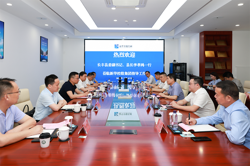 2022年7月15日下午,長豐縣委副書記、縣長李孝鴻一行蒞臨新華控股集團調研指導工作。長豐縣委常委、常務副縣長石磊,長豐縣副縣長王豐,長豐縣政府黨組成員、政府辦主任余成昌、長豐縣住建局局長趙孟,長豐縣雙鳳經開區管委會主任秦傳玉等領導參加調研。新華控股集團董事長吳成柱和新華控股集團各產業板塊負責人陪同調研。