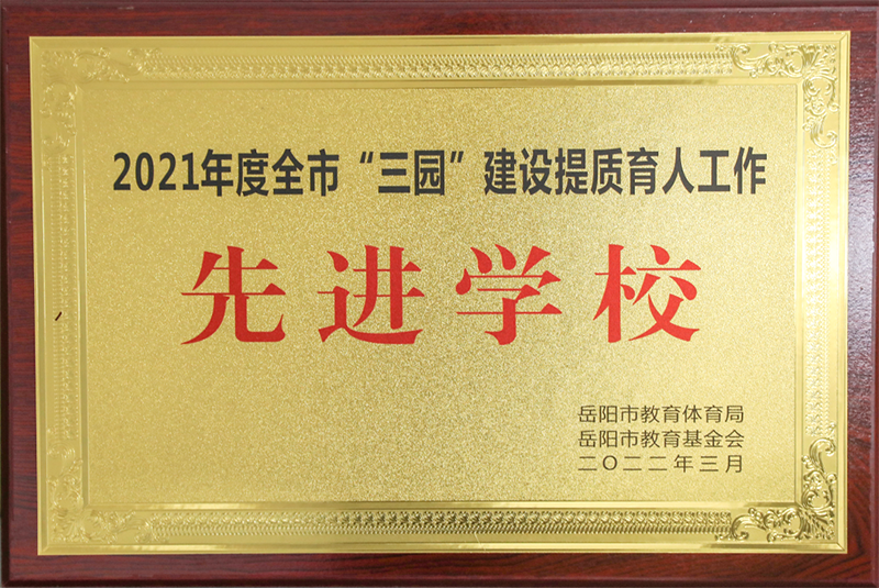 學(xué)校先后被評為“全國青少年籃球特色學(xué)?!薄ⅰ叭珖嗌倌曜闱蛱厣珜W(xué)校”,“岳陽市優(yōu)秀學(xué)校”、“文明標兵校園”、“三園”建設(shè)先進學(xué)校、“岳陽市教育教學(xué)先進民辦學(xué)?!钡葮s譽稱號。