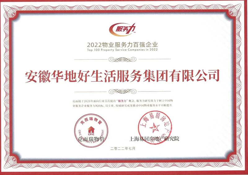 以卓越市場表現(xiàn),強大品牌影響力,華地好生活集團榮獲2022年中國物業(yè)服務(wù)力百強企業(yè)TOP46、中國城市服務(wù)TOP10、中國物業(yè)服務(wù)企業(yè)綜合實力TOP70、中國寫字樓物業(yè)服務(wù)領(lǐng)先企業(yè)、國家科技型中小企業(yè)等諸多榮譽稱號。
