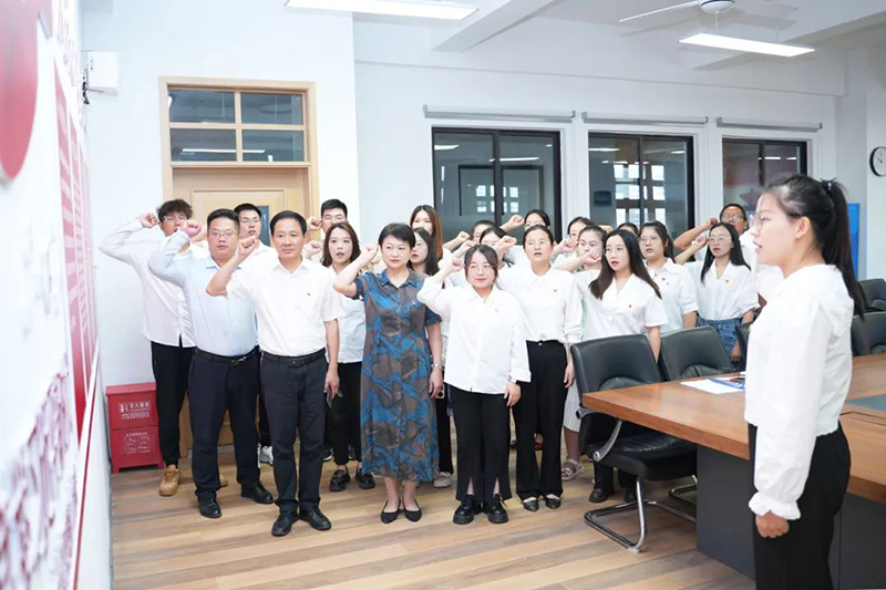 大會最后,黨員教師黃皖琪帶領(lǐng)全體黨員集體重溫入黨誓詞。面對鮮紅的黨旗,大家嚴(yán)肅認(rèn)真,響亮的誓言再次讓大家感受到黨員的使命與擔(dān)當(dāng)。