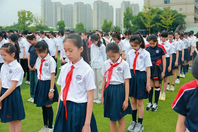 此次演練結(jié)合中秋假期結(jié)束后的第一個(gè)升旗儀式一同舉行,演練結(jié)束后,同學(xué)們整齊列隊(duì),前往操場(chǎng)舉行升旗儀式。一陣莊重嚴(yán)肅的默哀后,總校長(zhǎng)秦新春先生進(jìn)行了國(guó)旗下的講話。他帶領(lǐng)大家回顧了那段令國(guó)人屈辱的歷史,并告誡同學(xué)們要銘記歷史,勿忘國(guó)恥。同時(shí)要以史為誡,發(fā)憤圖強(qiáng),鑄牢中華民族共同體意識(shí),成為具有愛(ài)國(guó)主義底色的青少年。