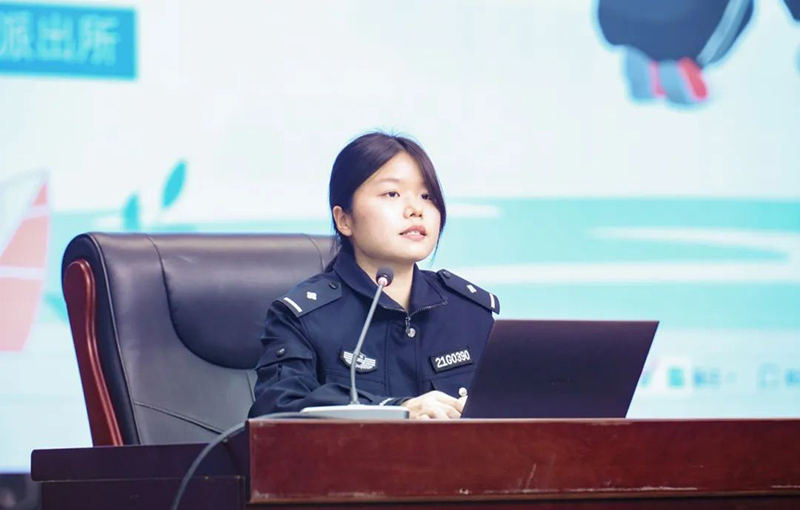 儀式伊始,新華高級中學(xué)黨支部副書記、副校長吳東向在座師生介紹新任法治副校長——雙墩派出所葉欣然警官。
