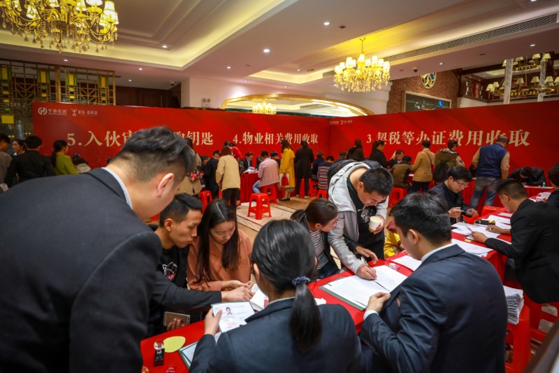 交付現場更是分區明確,動線流暢。從權證文件簽署、財務手續辦理、物業服務辦理、交接鑰匙、驗房確認,業主們在現場工作人員的引導下有條不紊的辦理各項手續,讓業主可以安心暢享即將到來的幸福生活。