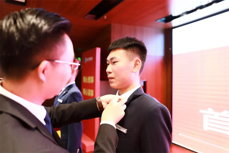 華地好生活集團(tuán)總經(jīng)理羅星星為優(yōu)秀學(xué)員佩戴郁金香徽章