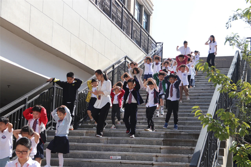 上午9時18分,急促的預先警報倏然拉響,劃破寧靜的長空,各樓道疏散員迅速到位,學生們在老師的帶領下,按照學校演練路線緊張有序地進行疏散,在2分鐘內,全校師生撤離完畢,演練全程緊張而不慌亂。