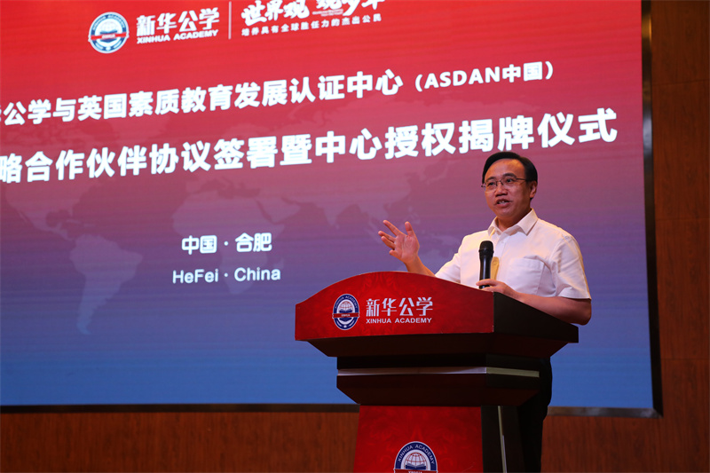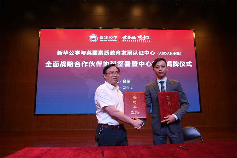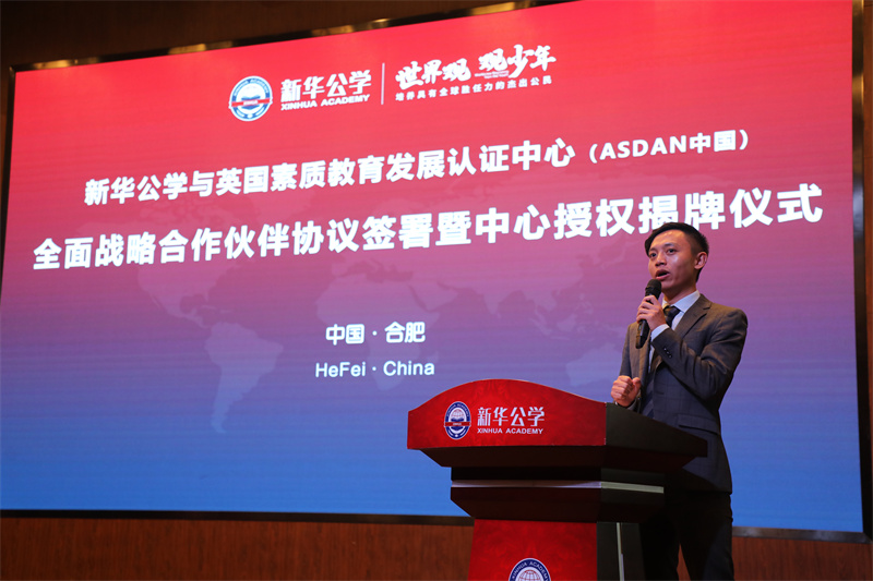 熱烈祝賀新華公學正式與英國素質(zhì)教育認證發(fā)展中心(中國區(qū))簽署戰(zhàn)略合作并榮獲授權(quán)。9月16日,ASDAN中國副總裁兼中西區(qū)總監(jiān)譚鳳先生蒞臨我校,出席此次簽約授牌儀式。