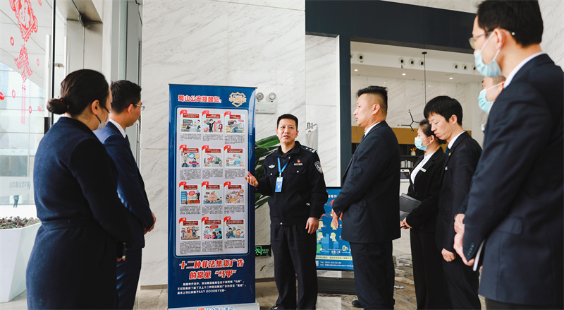 參觀結束后,雙方就“警企共建話平安”這一主題召開專項座談會,共商共建平安轄區(qū)。朱所長為參會人員著重介紹了打擊違法犯罪活動、防范電信網絡詐騙、風險隱患排查整治等警務工作開展情況,對常態(tài)化疫情防控、企業(yè)安全生產、流動人口管理等方面進行了重點強調,南七派出所將緊扣轄區(qū)企業(yè)發(fā)展需求,以優(yōu)化營商環(huán)境為己任,凝心聚力落實“警企互動”,與華地好生活集團攜手共筑“防護盾牌”,致力于搭建互動聯(lián)動、共贏多贏的“手挽手”警企關系,為構建平安轄區(qū)、和諧城市保駕護航。