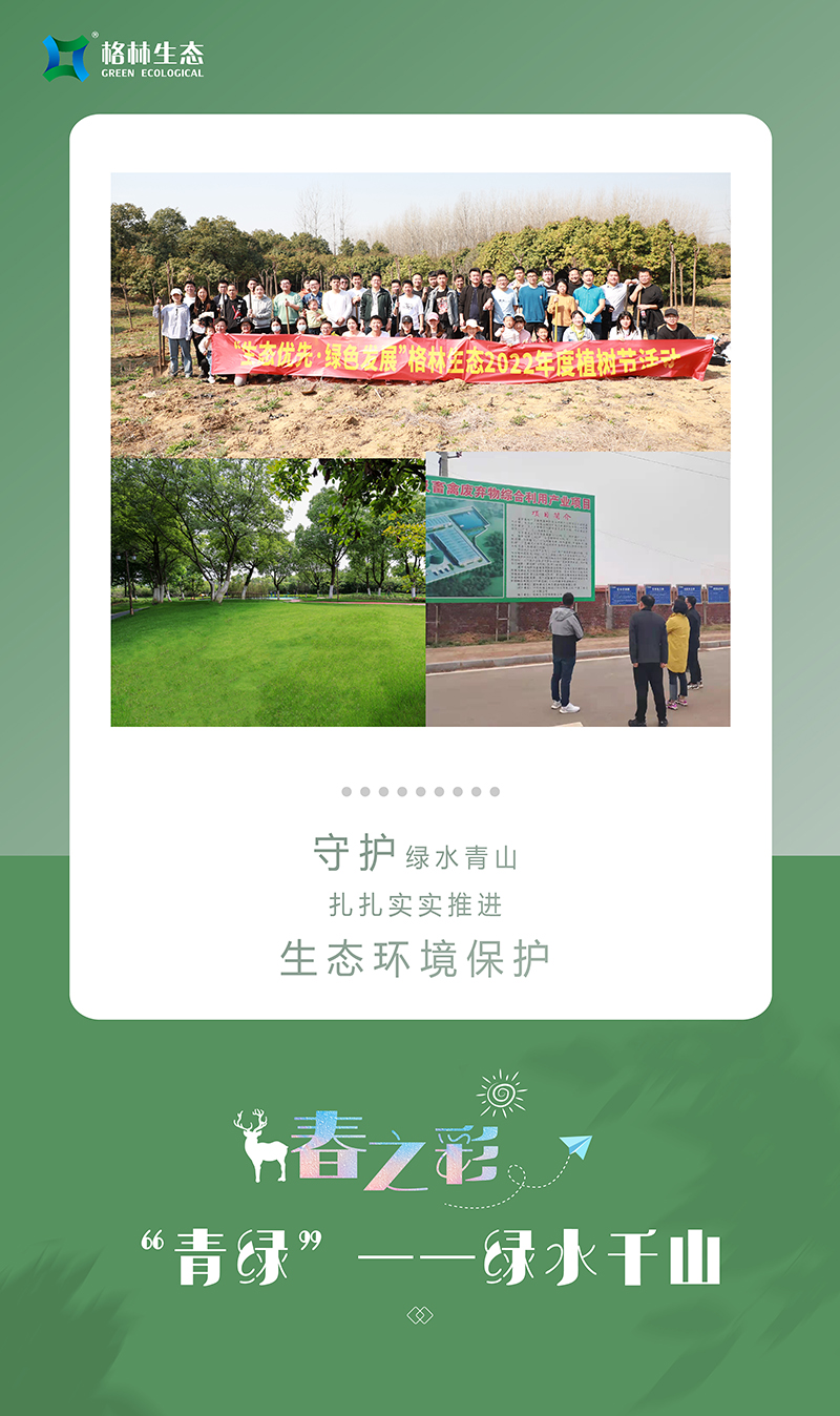 我們牢記“綠水青山就是金山銀山”的生態(tài)理念,每年開展植樹活動,今年共植三百余株欒樹和紅葉石楠球,讓綠色在大地蔓延;與此同時,格林生態(tài)積極履行社會責任,強化集約節(jié)約理念,與合作伙伴協(xié)同做好污水處理改善,促進水生態(tài)環(huán)境持續(xù)改善,努力實現(xiàn)經(jīng)濟發(fā)展和生態(tài)環(huán)保雙贏目標。現(xiàn)如今正是楊柳青青、草長鶯飛之時,傲人的青山綠水正在以秀美優(yōu)雅的姿態(tài)展現(xiàn)出來!
