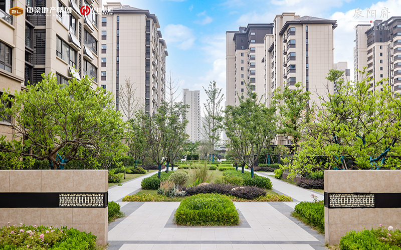 合肥中梁華地·辰陽府以現代三段式建筑美學精造外立面,簡約色彩搭配,展現現代居住新風尚。