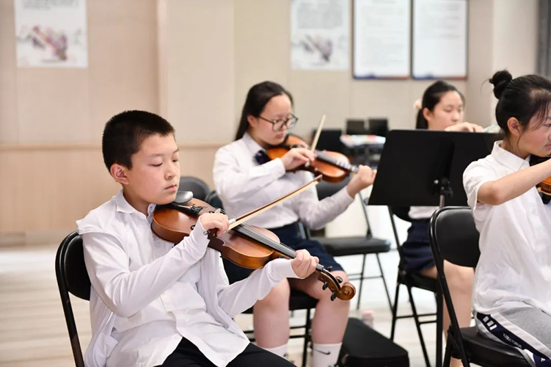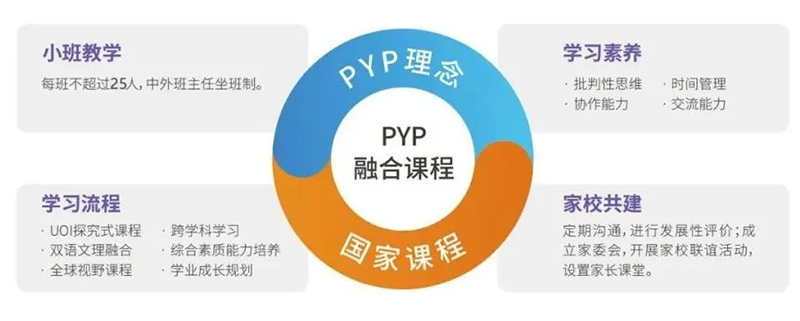 在完成國家規(guī)定課程的基礎(chǔ)上,強化語文、數(shù)學(xué)、歷史、政治等課程教學(xué),融合課程由外教進行授課,包括英語文學(xué)、數(shù)學(xué)、戲劇和科學(xué)等主修課程。