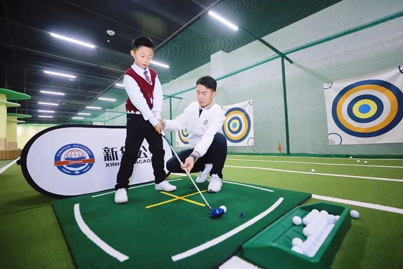 2021年,新華公學新建國際高爾夫訓練中心,為目前安徽最大的青少年高爾夫室內運動場館。館內擁有工智能模擬區(qū)、揮桿訓練區(qū)、體能綜合訓練區(qū)、高爾夫歷史文化展覽區(qū),供學生們學習和訓練。