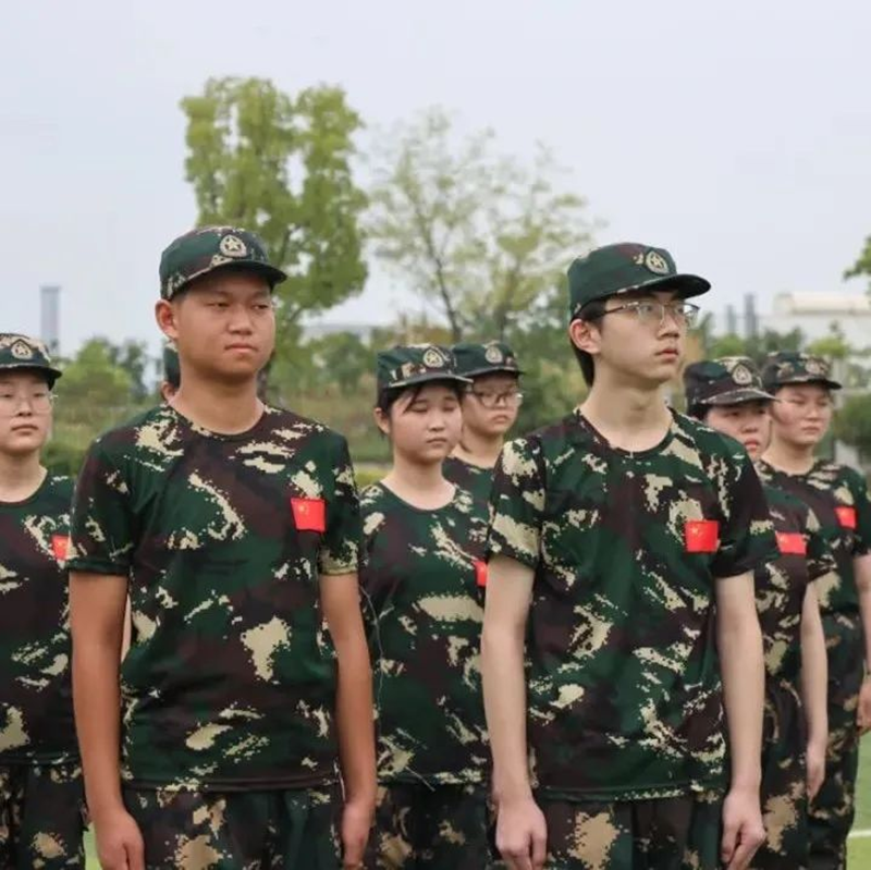 學子們身著迷彩服