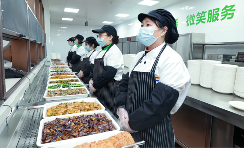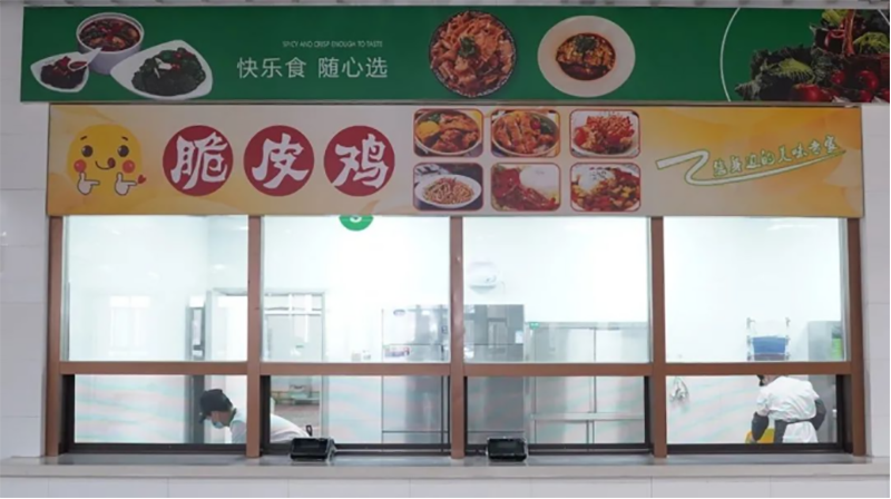 學生餐廳菜品留樣三天,餐具24小時消毒處理;菜品種類齊全,集各地美食于一體、多元風味并存;食材采購來源大品牌超市,食材新鮮,質量有保證;明廚亮灶工程,集視頻監(jiān)控、展示直播于一體,保護師生“ 舌尖上的安全”。