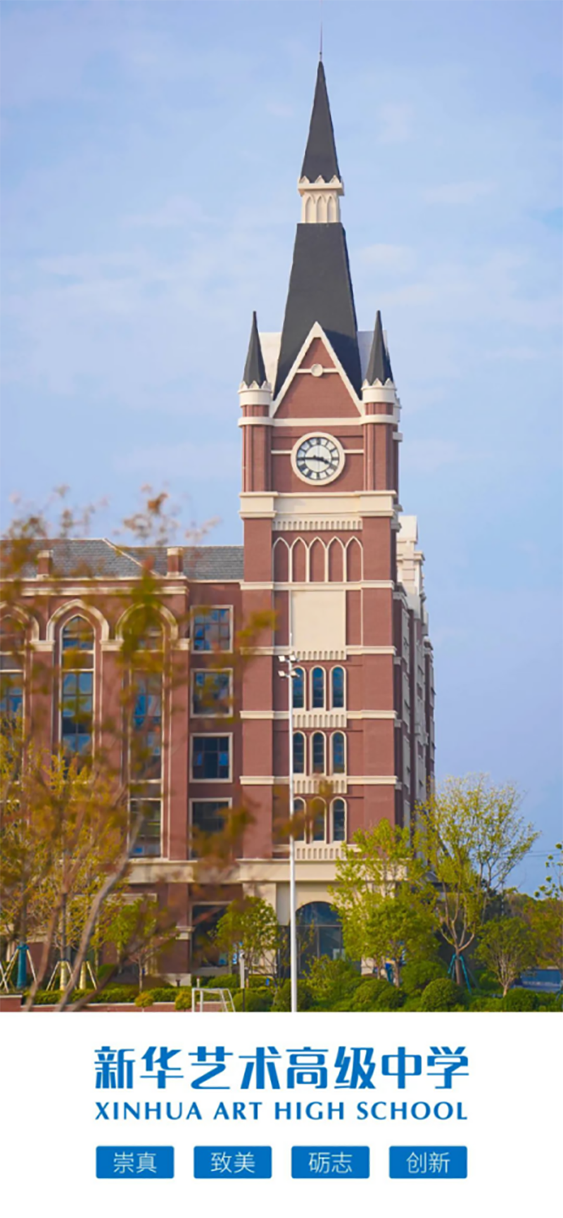 一步一風景,一墻一世界。新華藝術高級中學就是這樣一個充滿濃厚文化藝術氣息的校園,走進校園的每一個角落,你都會感受到它的強大的藝術美的熏陶和同化力,潤物細無聲,潛移默化著學生的心靈,豐富著學生的審美能力和情趣,使學生的個性得到不斷的完善和豐富。