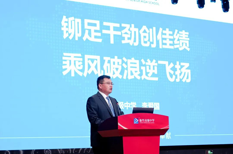 副校長李愛國以《鉚足干勁創佳績 乘風破浪逆飛揚》為主題發言。他就新學期教育教學工作做出全面部署,提出新學期的六大工作目標;同時,他希望全體教師關注自身的師德修養,努力成為學問深、品德高、格局大的“大先生”。