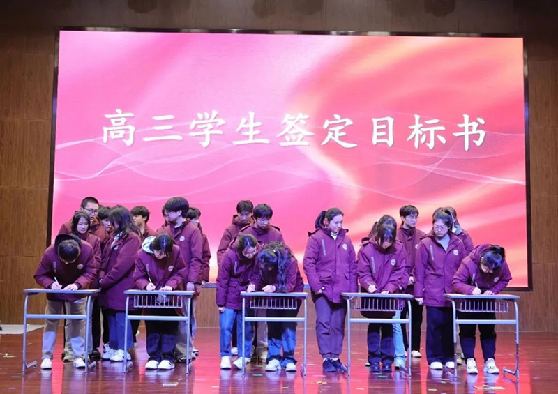 全體高三學生在高考目標書上簽字,如誓言所說,不負父母的期望,不負老師的厚望,不負青春的理想,為自己交上一份滿意的答卷。