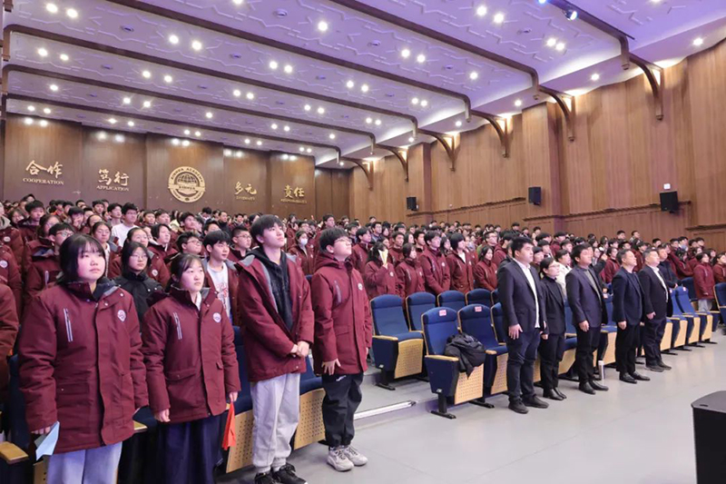 本次誓師大會在莊嚴的國歌中拉開序幕,激昂的進行曲向同學們發出了圓青春夢想的動員令,吹響了實現人生理想的進軍號!這是表達必勝豪情的奏鳴曲。