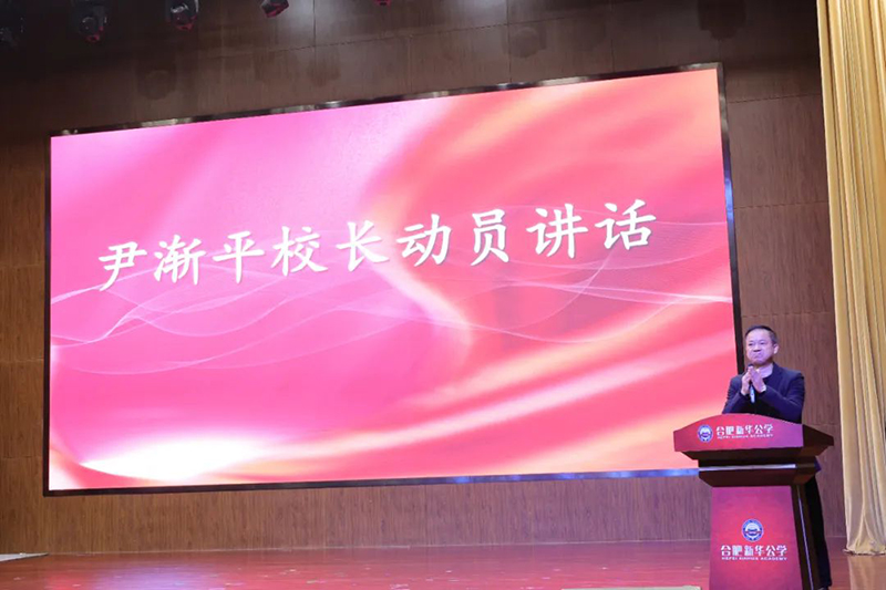 全體師生用熱烈的掌聲歡迎尹漸平校長為本次誓師大會做動員講話。尹校長在講話中指出:這是一場關乎榮譽、責任與夢想的盛會。百日,是時間的標尺,更是奮斗的號角。并鄭重地向大家發出號召:“讓我們以百倍的信心,千倍的努力,迎接百日沖刺奮斗新征程!”