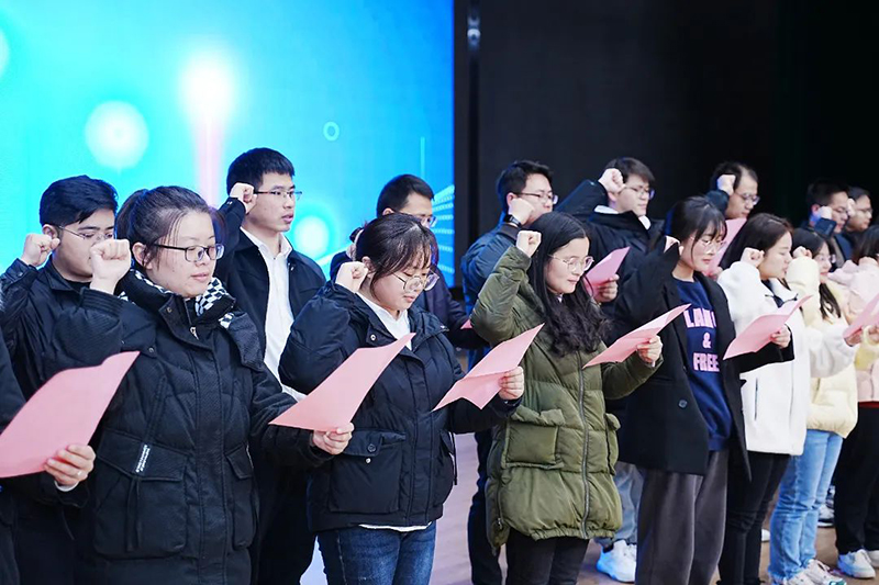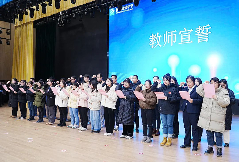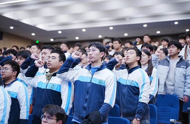 接下來由鮑李合毅同學帶領全體學生宣誓,他們豪情萬丈,壯志凌云,鏗鏘的宣誓響徹大廳,氣壯山河的誓言似乎已經在預示著他們學考的勝利。