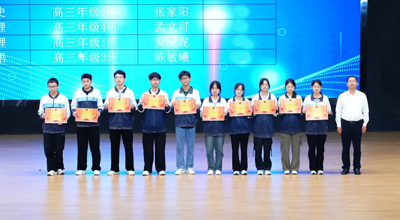在金秋十月的收獲季節(jié),我校高三年級全體師生齊聚文體中心報告廳隆重召開十月份聯(lián)考表彰大會,旨在激發(fā)每一位同學(xué)的學(xué)習(xí)熱情,鼓勵他們以更飽滿的精神面貌投入到學(xué)習(xí)中,提高課堂學(xué)習(xí)效率,共同迎接未來的挑戰(zhàn)。新華高級中學(xué)校長徐邦民,副校長陳俊,黨政辦公室主任夏娟娟,高三年級主任吳琪琦、陳杰和高三年級全體師生出席本次表彰大會。